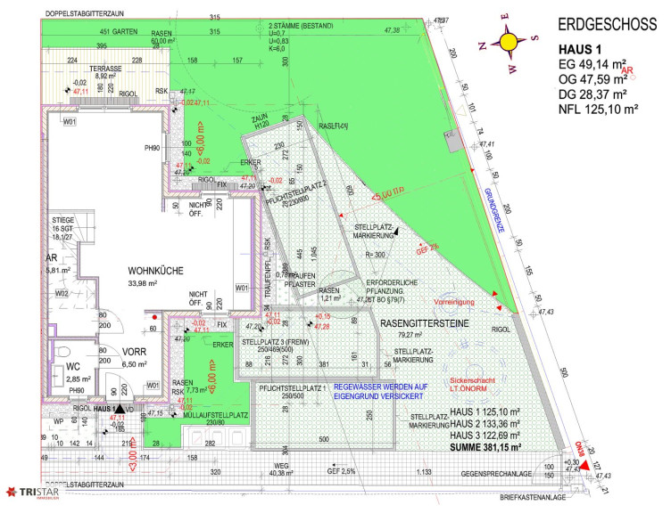 WNFL ca. 122,69 m² (5 Zimmer) + Garten ca. 117 m² + Terrasse (EG) ca. 9,60 m² + Terrasse (DG) ca. 11 m² + PKW Stellplatz = EUR 799.000,- Schlüsselfertig und inkl. PKW Stellplatz