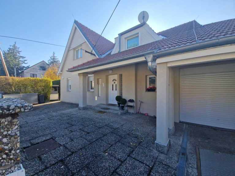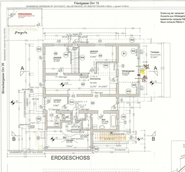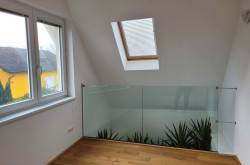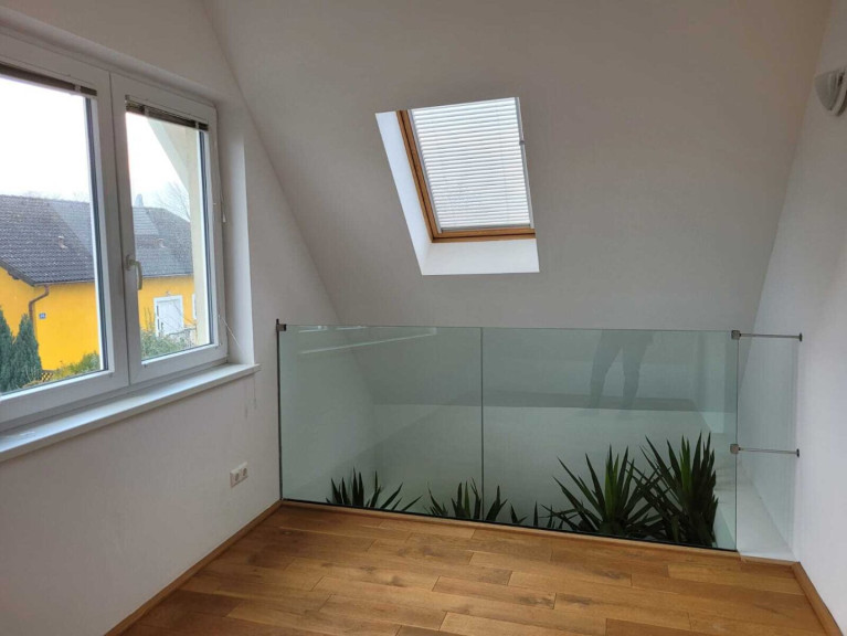 Im Erdgeschoss befindet die helle geräumige Einbauküche mit eigenem Essbereich. Das große lichtdurchflutete Wohnzimmer öffnet sich direkt zum gemütlichen Wintergarten, welcher mit einer Außenjalousien ausgestattet ist, der anschließenden Terrasse und zum sonnigen, ebenen Garten. Auf dieser Ebene finden Sie weiters 2 Schlafzimmer, ein Gäste-WC, ein Badezimmer mit Wanne und extra Walk-in Dusche.