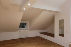 Im Dachgeschoss befindet sich ein großes Schlafzimmer mit einem begehbaren Schrankraum und Blick in den Garten, ein zweites Schlafzimmer sowieein drittes Zimmer, welches auch als Arbeitszimmer genutzt werden kann. Außerdem finden Sie auf dieser Ebene ein geräumiges Badezimmer mit Badewanne, WC sowie einem Waschbecken mit Spiegelschrank, ein extra WC sowie einen Balkon und eine Terrasse.