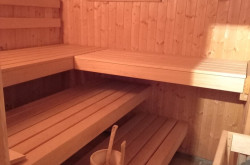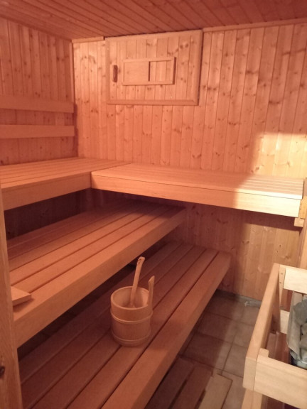 - ein Wellnessbereich mit Sauna und Dampfdusche