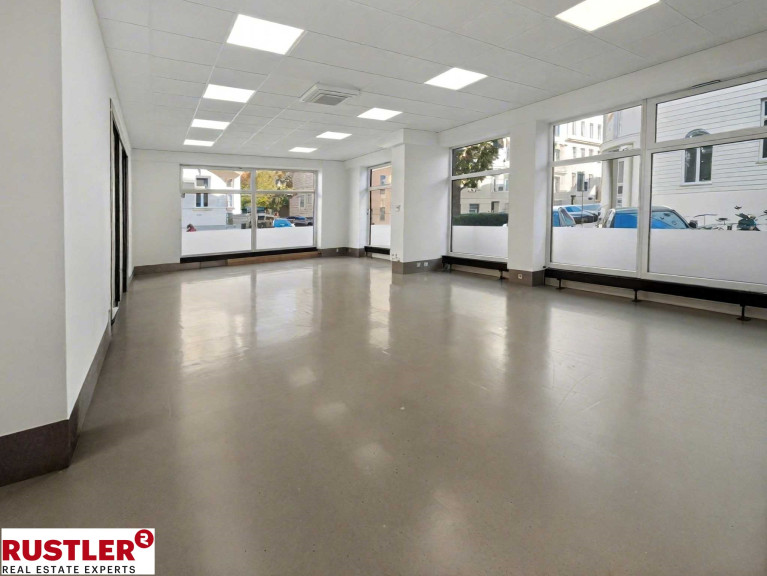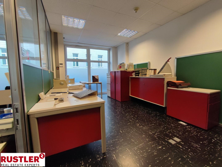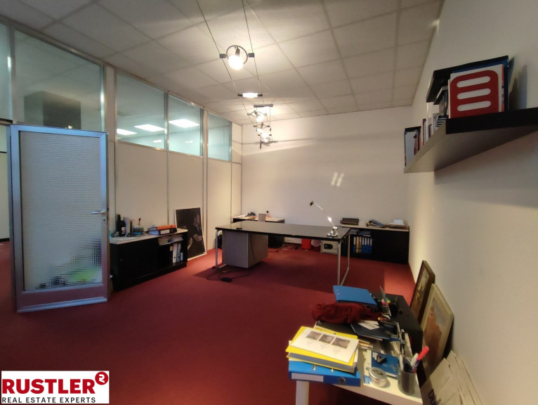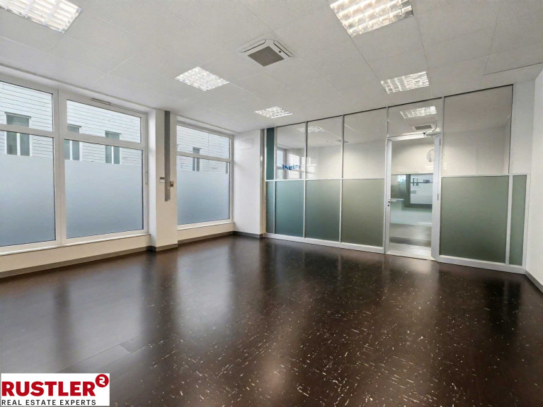 Der Eingangsbereich bildet ein großzügiger Hauptraum mit antistatischem Bodenbelag, der flexibel für Kundenempfang, Wartezone, Verkauf oder kombinierte Nutzungen eingesetzt werden kann. Zwei angrenzende Räume eignen sich ideal als Werkstatt, Behandlungsraum, Servicestation oder Lager. Im hinteren Bereich befinden sich ein separates Büro sowie ein Besprechungszimmer mit Balkon, beide ruhig zum Innenhof ausgerichtet.