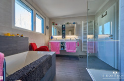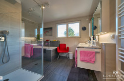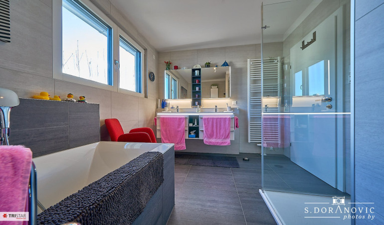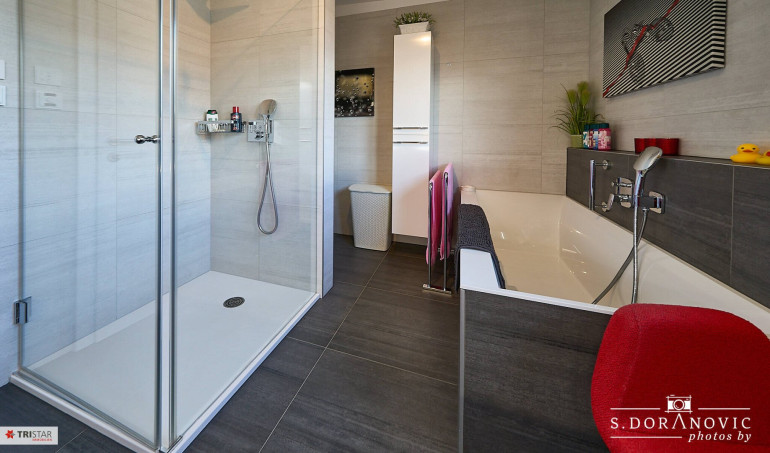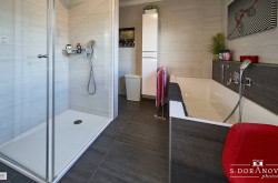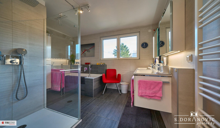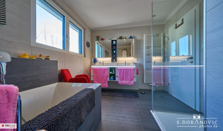 - Bad mit Fenster, Wanne, Dusche, WC, doppelter Waschbecken