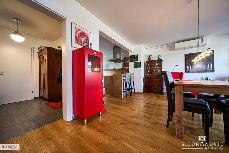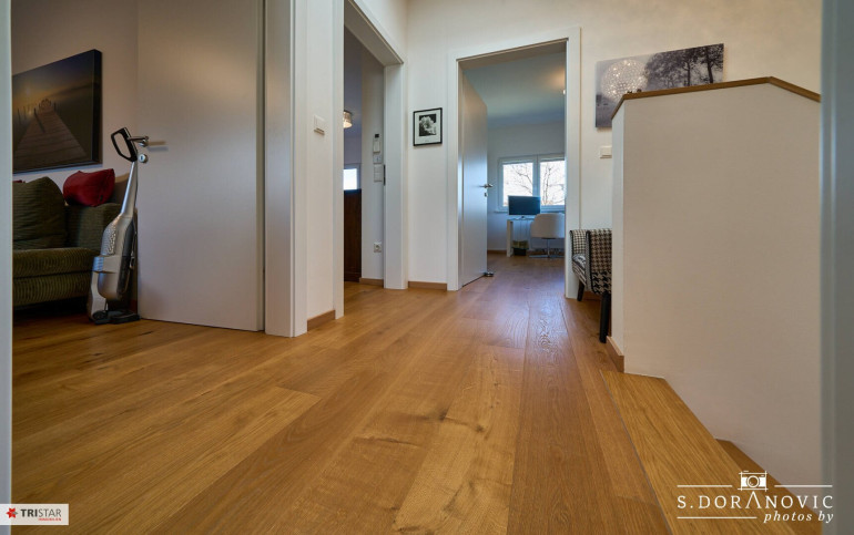Parkett, Fliesen, Fußbodenheizung, Zentralheizung, Wohnküche / offene Küche, Südbalkon, Bad mit Fenster, Badewanne, Dusche, Carport