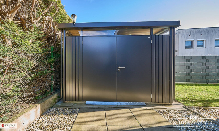 - Direkte Zufahrt von der ruhigen Straße zum Carport über ein elektrisch betriebenes Schiebetor mit komfortabler Fernsteuerung.