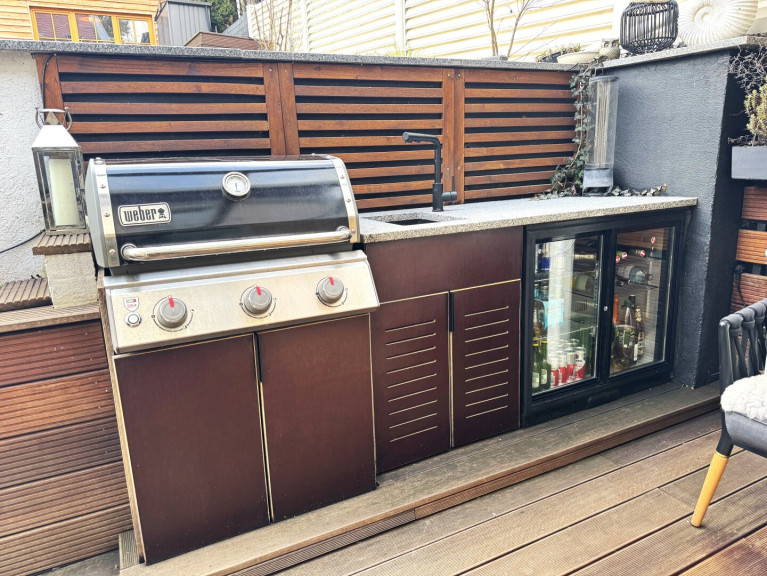 Ein besonderes Highlight ist der eigene Garten mit Outdoorküche – ein wahres Paradies für Garten und Grill Liebhaber die im Sommer einen angenehmen Barbecue Abend mit Freunden und Familie verbringen möchten. Die Gartenhütte mit Wasser und Stromanschluss bietet vielseitige Möglichkeiten der Gestaltung, egal ob kleine Wellnessoase oder einfach als gemütliche Stube für nettes Beisammensein.