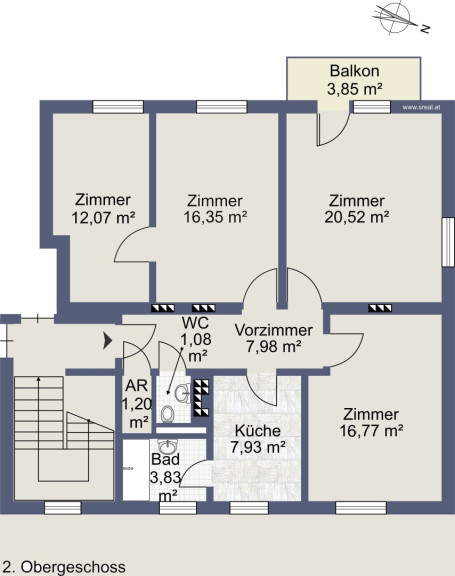 Die 4-Zimmer-Eckwohnung liegt im 2. Stock eines gepflegten Mehrparteienhauses und verfügt über ca. 88 m² Wohnfläche.