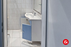 Die Wohnung ist mit modernen Einbauleuchten ausgestattet. Die Fußböden in den Nassräumen sind verfliest.