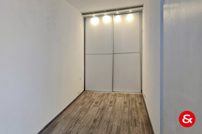 - Schlafzimmer mit einem 140x200 cm großem Bett und modernen Einbauschrank.