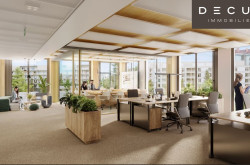 Hohe Decken, natürliche Holzoberflächen und eine flexible Raumeinteilung schaffen die besten Voraussetzungen für ein individuelles Bürokonzept. Moderne Heiz-/Kühlsegel-Technologie sorgt für größtmögliche thermische Behaglichkeit, Stehleuchten mit direktem bzw. indirektem Lichtanteil garantieren zu jeder Tageszeit die richtige Beleuchtung.