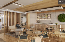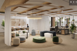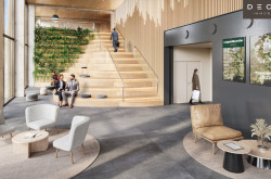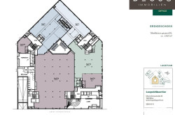 - Es ist geplant, Flächen an einen Co-Working Anbieter zu vermieten, der eventuell auch einen Empfang im Haus betreibt. Wenn gewünscht, kann in der Lobby ein Empfang vom Mieter betrieben werden.