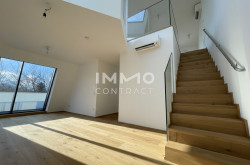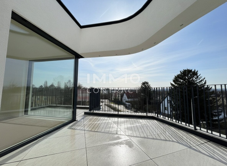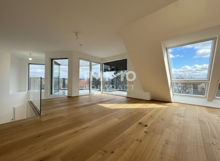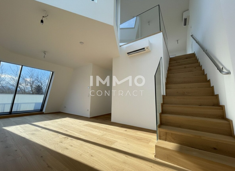 Top 7 begeistert mit lichtdurchfluteten Räumen und großzügigen Glasflächen. Das offene Konzept mit bis zu knapp 6 m Raumhöhe und weitläufigen Außenbereichen sorgt für ein höchst beeindruckendes Wohngefühl. Das außergewöhnliche Penthouse bietet auf rund 114 m² Wohnfläche verteilt auf zwei Ebenen viel Platz für exklusive Wohnträume – perfekt für alle, die etwas ganz Besonderes suchen. Die drei Schlafräume eröffnen vielfältige Nutzungsmöglichkeiten: Arbeiten im eigenen Homeoffice, ein separates Fitness- oder Yogazimmer oder ein komfortabler Gästebereich. Zwei Badezimmer – eines mit Badewanne und WC, das andere mit Dusche, WC und Fenster mit Grünblick – sorgen für zusätzlichen Komfort. Die beiden weitläufigen Terrassen ergänzen das Wohnerlebnis: Die untere Terrasse mit ca. 45 m² Außenfläche eignet sich ideal als ruhiger Sonnenplatz mit charmanter Bepflanzung, während die obere Terrasse mit ca. 28 m² perfekt für entspannte Abende mit Freunden als Outdoor-Wohnzimmer oder privater Sonnenbereich genutzt werden kann.