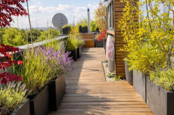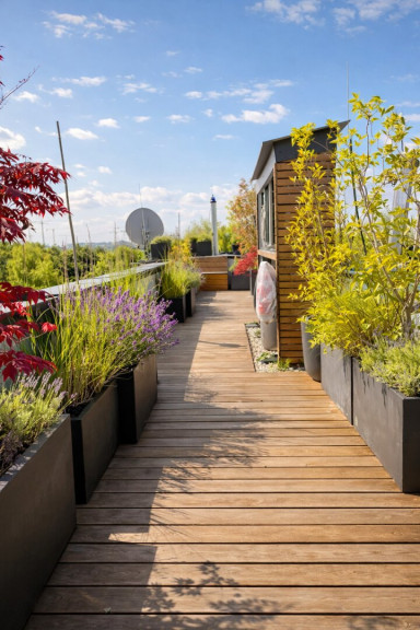 The sheltered main-level terrace provides a discreet extension of the interior living area. Above, the expansive private rooftop terrace offers panoramic views and versatile use — ideal for refined entertaining or tranquil retreat.