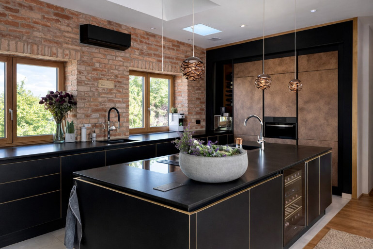 The centrepiece of the residence is the approximately 75 m² open-plan living salon. Kitchen, dining area and lounge merge seamlessly into one impressive space designed for both representation and comfort.