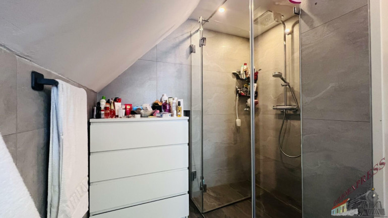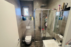 Badezimmer mit eine große Dusche, Waschbecken und Toilette