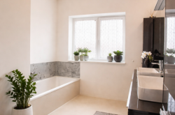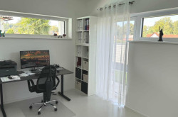 Das Haus bietet neben dem Privat-Bereich mit Schlafzimmer, Schrankraum und Tageslichtbadezimmer (Dusche und Badewanne) ein weiteres Schlafzimmer bzw. Büro.
