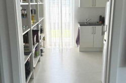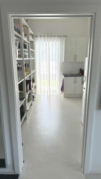Der kombinierte Haushalts-Vorratsraum ist sowohl vom Küchenbereich als auch vom Eingangsbereich betretbar.