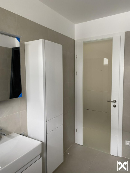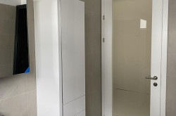 - Badezimmer mit 2 Waschtischen, Spiegelschrank, barrierefreier
