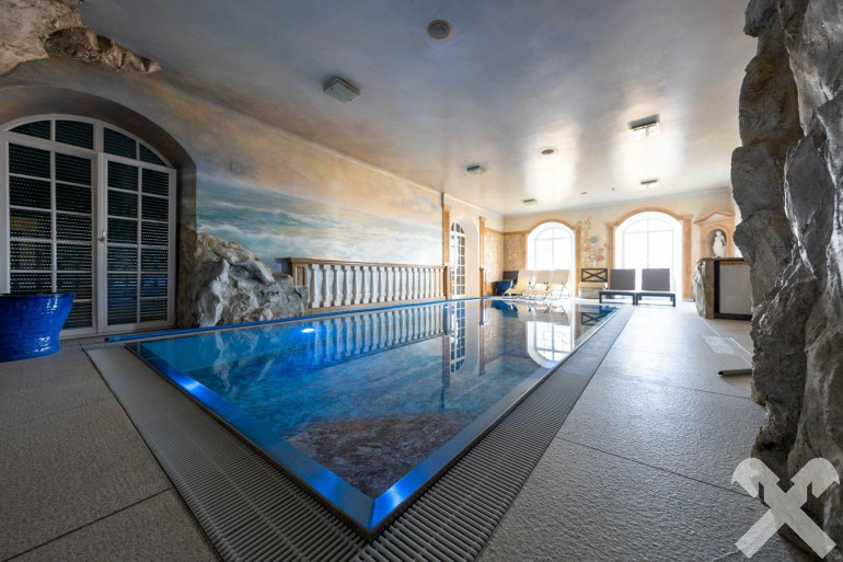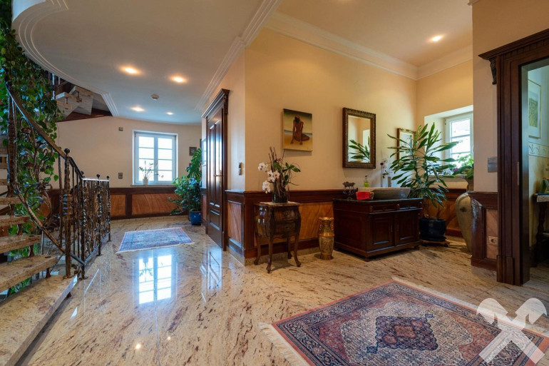 Die Gebäude samt Außenanlage sind mit edlem Marmor und Granit ausgestattet. Zu den Wohnbereichen gibt es einen lichtdurchfluteten Indoor-Pool-Bereich, Sauna, Whirlpool, Klimaanlage, Terrasse mit Wasserfall, Garagenplätze, Carports, Hobbyräumlichkeit, Fitnessraum, sowie die Vorbereitung für eine moderne Liftanlage.