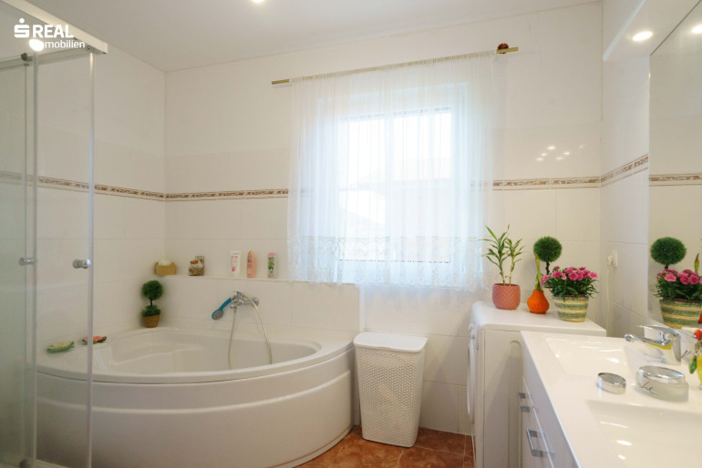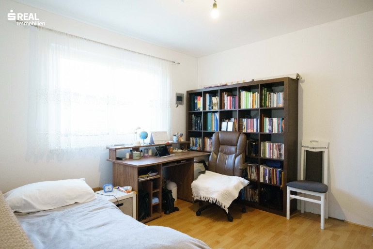Über die Sicherheitstüre betritt man den Hausflur und hat alle Räumlichkeiten separat erreichbar, angefangen von der Toilette mit Waschbecken, dem Kabinett, der Wohnküche, einer Speis, einem Abstellraum, Schlafzimmer mit Schrankraum, Büro/Kinderzimmer und dem Dusch-/Wannenbad mit WM-Anschluss und Doppelwaschbecken (Anschlüsse für eine zweite Toilette im Bad vorhanden). So ist die Wohnfläche von ca. 101m² sehr übersichtlich und kompakt, perfekt ausgenutzt und durch die großen Fenster und die Himmelsausrichtung schön hell und lichtdurchflutet.