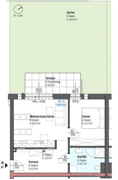 Mit einer großzügigen Wohnfläche von 48,11 m² verteilt auf zwei gut geschnittene Zimmer, bietet diese Wohnung ausreichend Platz für Singles oder Paare. Die offene Wohnküche schafft eine einladende Atmosphäre, ideal für gesellige Abende mit Freunden oder entspannte Stunden mit der Familie. Die große Terrasse und der angrenzende Garten laden dazu ein, die frische Luft zu genießen und entspannte Sonnenstunden im Freien zu verbringen.