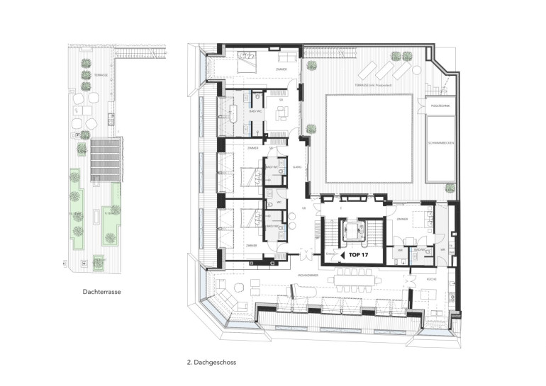 Enter a realm where living space becomes a life experience. This remarkable penthouse within the prestigious Herzfeldhaus offers approximately 367 m² of living space, a 133 m² terrace with private pool, and an additional 115 m² rooftop terrace with sweeping, unobstructed views across Vienna to St. Stephen’s Cathedral.