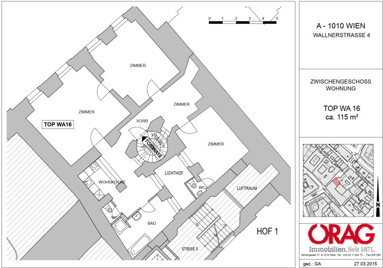 Die Lage zeichnet sich durch die Nähe zur Freyung, zum Schottentor und zur Börse aus. Zahlreiche Straßenbahn-, Bus- und U-Bahnlinien stehen unmittelbar zur Verfügung (U2, U3, 1, 2, 40, 41, 42).Beschreibung der Immobilie