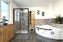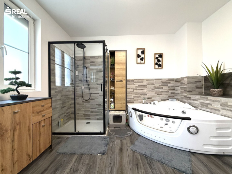 - großes, modernisiertes Badezimmer mit Doppelwaschbecken, Walk-in-Dusche sowie eine Badewanne mit Whirlpool-Funktion