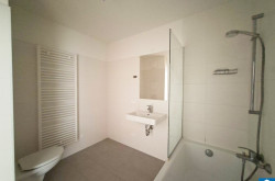 - Badezimmer mit Wanne, WC und Waschmaschinenanschluss