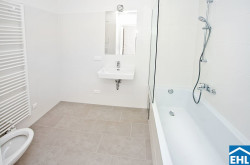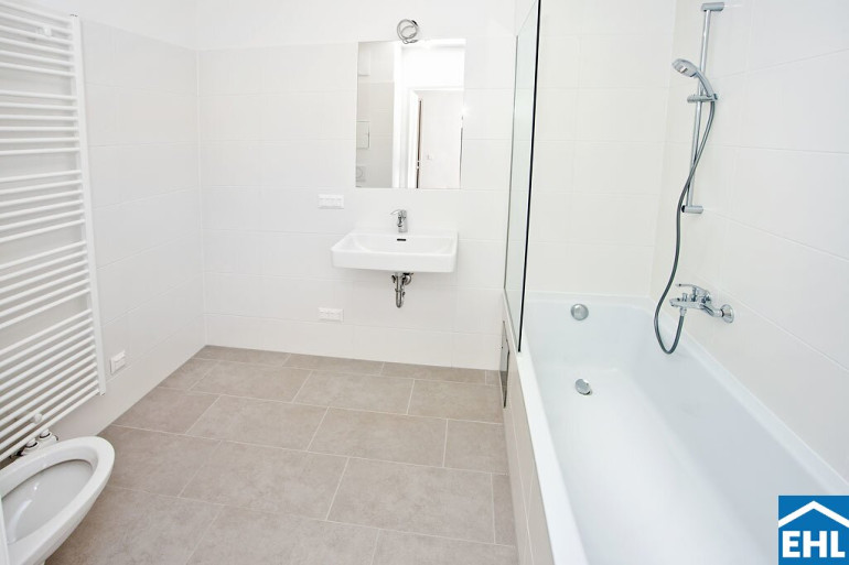 - Badezimmer mit Wanne, WC und Waschmaschinenanschluss