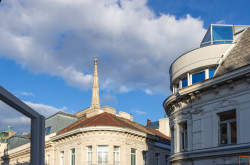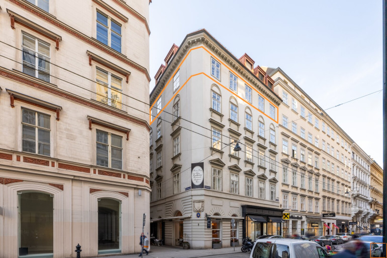 Die Wohnung befindet sich im vierten und damit obersten Regelgeschoß des denkmalgeschützten Göttweigerhofs, in dem auch Wiens Maßhemdenkönig Venturini, das Hutgeschäft Mühlbauer und ein italienisches Restaurant beheimatet sind.