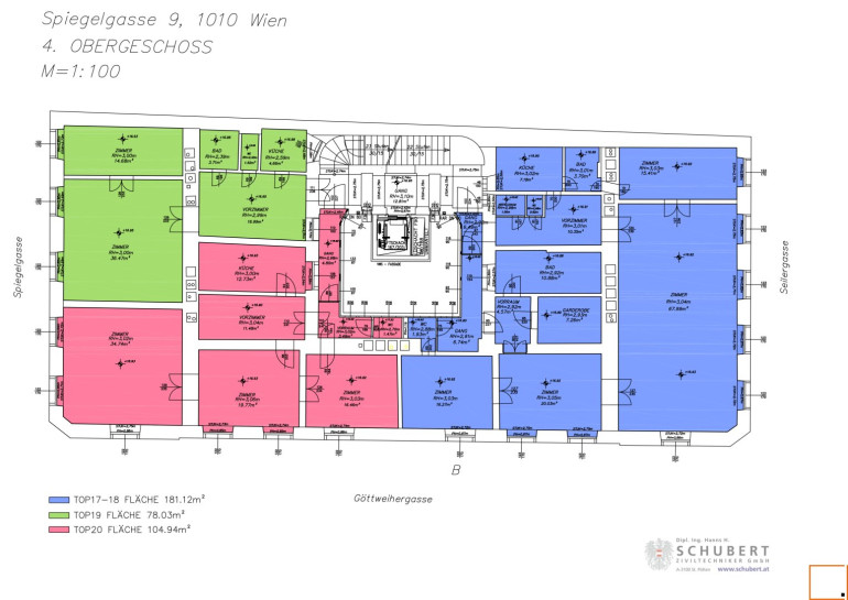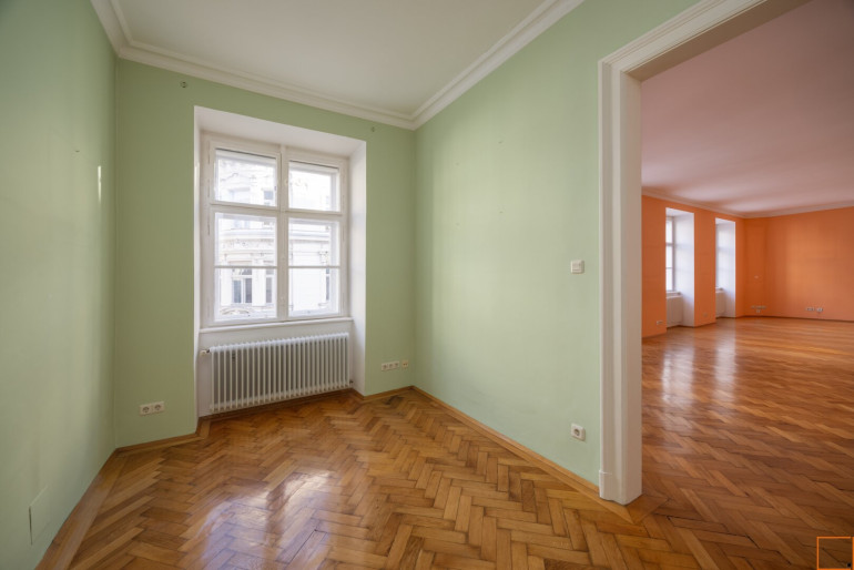 Der gesamte Flügel des Hauses, der in Richtung Seilergasse weist, wird Ihr neues Zuhause sein, zwei weitere Räume weisen in die Göttweigergasse.