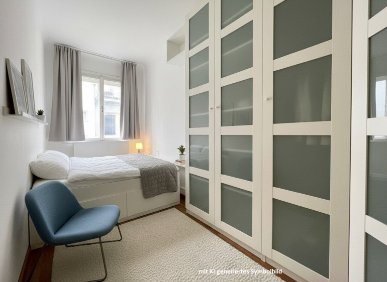 Einzelne Bilder sind mit KI generiert um eine Darstellung mit Möblierung zu ermöglichen. Der derzeitige Zustand der Wohnung wird auf allen Fotos, die keinen Hinweis auf KI-Einsatz haben, dargestellt.