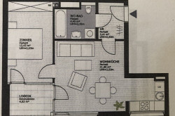 Wohnraum mit offener Küche und Zugang zur Loggia, Schlafzimmer mit Zugang zur Loggia , Vorzimmer,