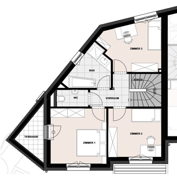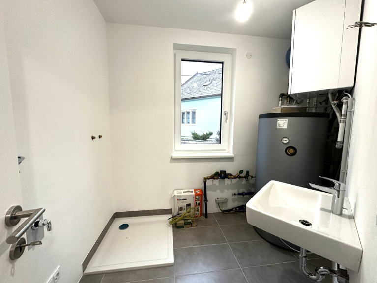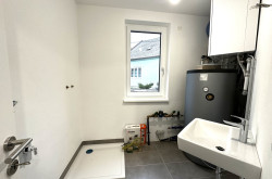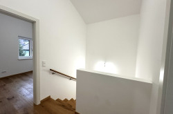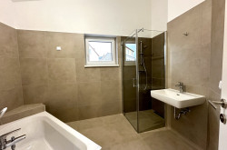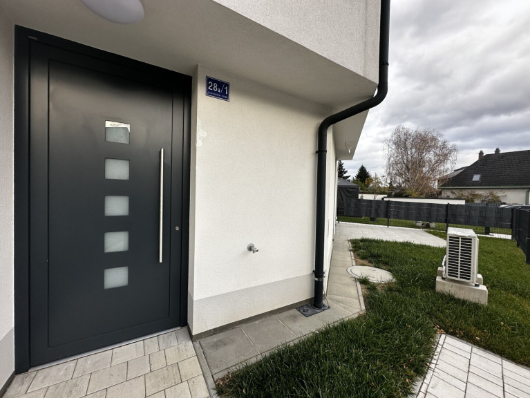 Jede Einheit verfügt über fünf Zimmer, eine durchdachte Raumaufteilung und einen lichtdurchfluteten Wohnbereich. Die Beheizung erfolgt über eine Luftwärmepumpe mit Fußbodenheizung in allen Geschossen. Hochwertige Kunststoff-Alu-Fenster mit 3-fach Thermoverglasung und bauseitige Raffstores sorgen für optimalen Wohnkomfort. Zusätzlich gehören zu jeder Einheit ein Eigengarten und zwei asphaltierte PKW-Stellplätze. Die Massivbauweise mit Ziegelmauerwerk und hochwertiger Wärmedämmung gewährleistet eine hohe Energieeffizienz und nachhaltigen Wohnkomfort.