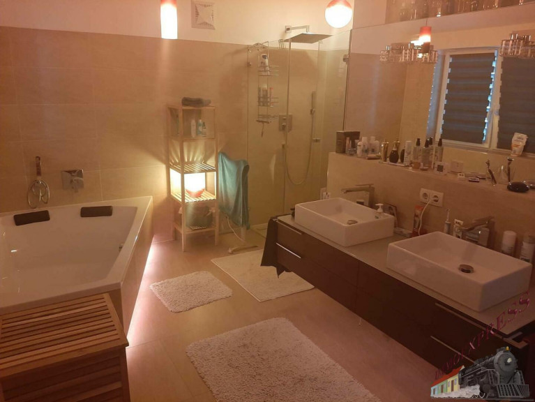 Dieses gepflegte Einfamilienhaus mit einer Wohnnutzfläche von ca. 270 m² (Erd- und Dachgeschoss ca. 180 m², Keller ca. 90 m²) wurde in den 1970er Jahren errichtet und 2013 umfassend saniert. Im Zuge der Sanierung wurden unter anderem Dach, Fenster mit 3-fach-Verglasung, eine 22 cm starke Thermofassade sowie sämtliche Leitungen (Heizung, Wasser, Elektro) erneuert.