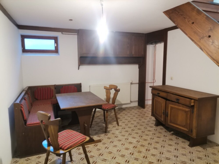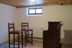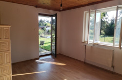 1 großes Esszimmer mit Ausgang zu einer Terrasse, Kamin vorhanden für einen Ofen, Blumenfenster