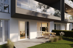 Im Erdgeschoss genießen die Bewohner private Terrassen mit Eigengarten, während die Wohnungen in den Obergeschossen über sonnige Loggien verfügen.