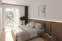 Im Erdgeschoss genießen die Bewohner private Terrassen mit Eigengarten, während die Wohnungen in den Obergeschossen über sonnige Loggien verfügen.