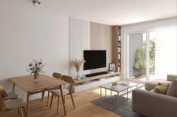 Im Erdgeschoss genießen die Bewohner private Terrassen mit Eigengarten, während die Wohnungen in den Obergeschossen über sonnige Loggien verfügen.