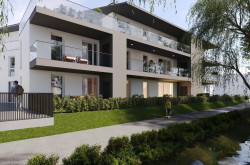 Im Erdgeschoss genießen die Bewohner private Terrassen mit Eigengarten, während die Wohnungen in den Obergeschossen über sonnige Loggien verfügen.