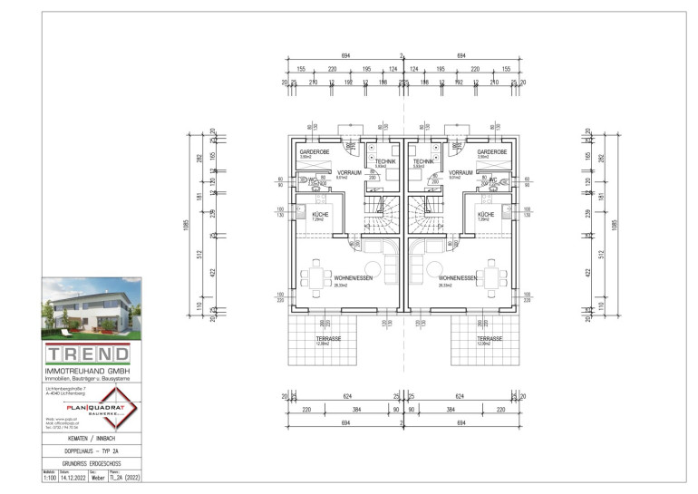 DOPPELHAUS TOP 3 ca. 340 m² gemäß Plan EUR 423.517,--