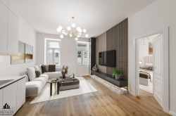 Jeder Raum atmet den Charme des klassischen Wiener Altbaus, betont durch hohe Decken und großzügige Fenster, die Licht und Weite einladen. Die Ausstattung erzählt von Eleganz und Stil: edle Parkettböden, die Wärme ausstrahlen, und moderne Design-Armaturen, die jedem Raum eine zeitgemäße Note verleihen.