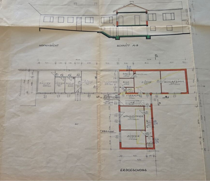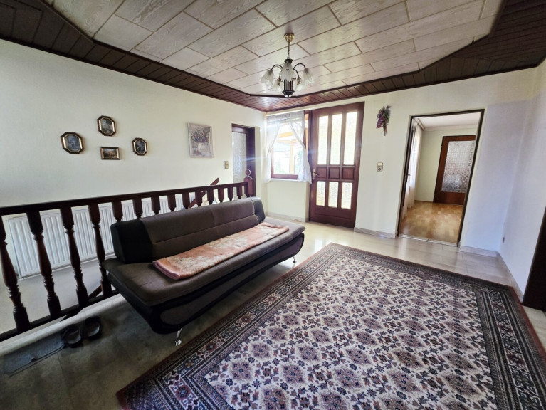 Das Wohnhaus verfügt über rund 165 m² Wohnfläche, aufgeteilt auf 6 Zimmer. Zwei separate Eingänge machen die Nutzung als zwei Wohneinheiten möglich – ideal für Mehrgenerationenwohnen oder Arbeiten und Wohnen unter einem Dach. Die Wohneinheiten sind derzeit verbunden, können aber flexibel genutzt werden.