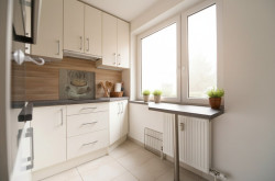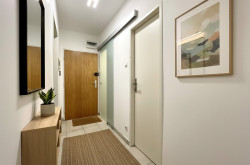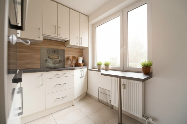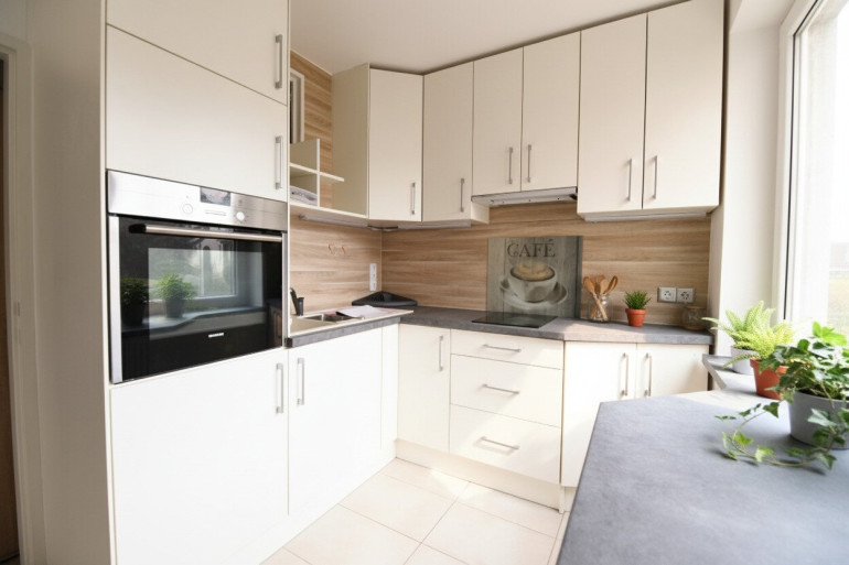 Bereits beim Betreten vermittelt das Vorzimmer ein harmonisches Raumgefühl. Das helle Wohnzimmer bildet das Herzstück der Wohnung und bietet direkten Zugang zum einladenden Balkon, der ideal ist, um entspannt den Feierabend zu genießen. Die maßgefertigte Einbauküche fügt sich optimal ein und ermöglicht komfortables Kochen.