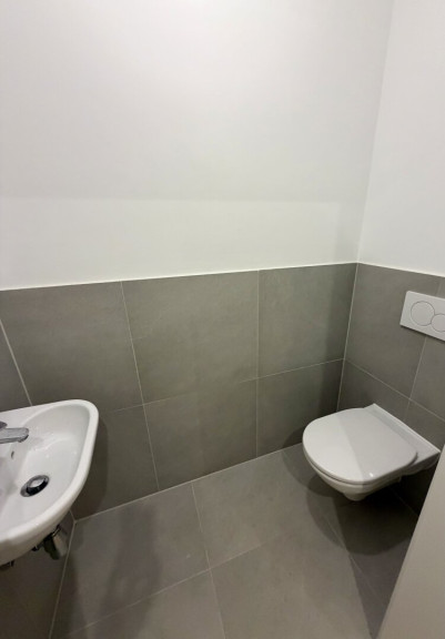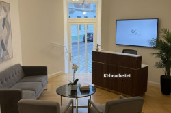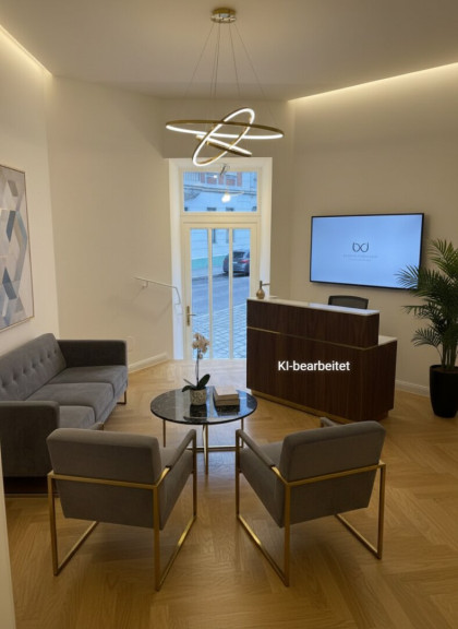 Die Räumlichkeiten befinden sich im Erdgeschoss und überzeugen durch ihre moderne Ausstattung. Die Kombination aus eleganten Fliesen und hochwertigem Parkett schafft eine angenehme Atmosphäre, die sowohl Kunden als auch Mitarbeitern zugutekommt.