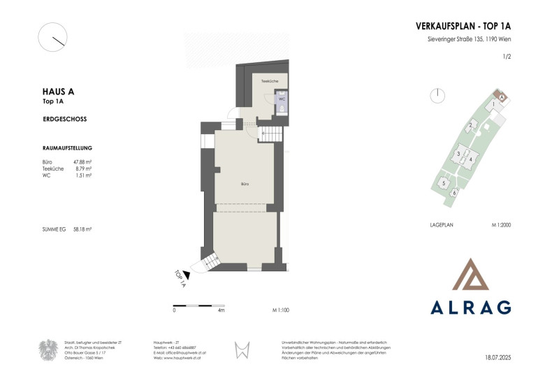 Die Immobilie befindet sich im begehrten 19. Bezirk von Wien, umgeben von einer hervorragenden Infrastruktur. In unmittelbarer Nähe finden Sie alles, was Sie für den Alltag benötigen: Ärzte, Apotheken, Schulen und Kindergärten sind bequem erreichbar. Supermärkte und Bäckereien sorgen für eine optimale Versorgung. Die Nähe zu Geldautomaten, Banken und der Polizei erhöht das Sicherheitsgefühl. Auch die Anbindung an den öffentlichen Verkehr durch Buslinien ist ideal. Ein perfekter Standort für Büro oder Praxis!Beschreibung der Immobilie