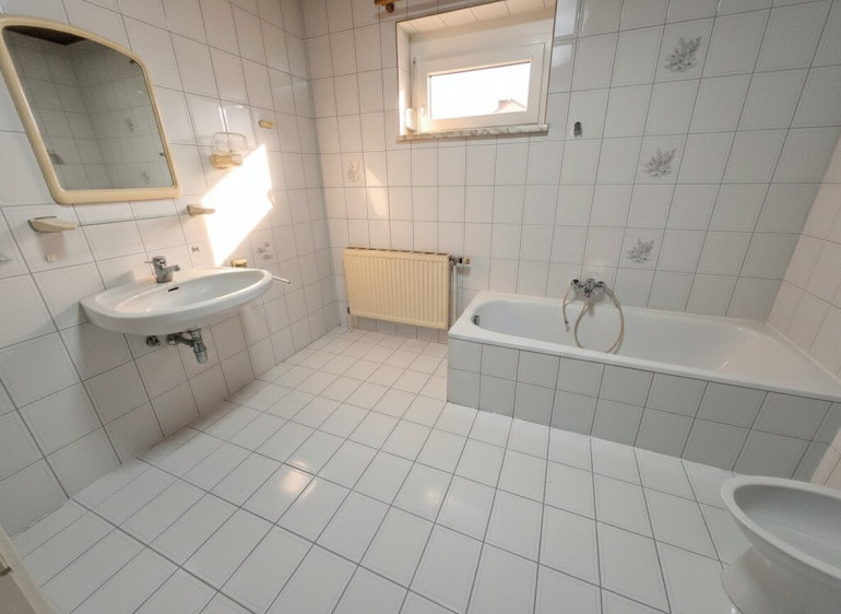 Gas, Zentralheizung, Einbauküche, Bad mit Fenster, Badewanne, Dusche, Garage