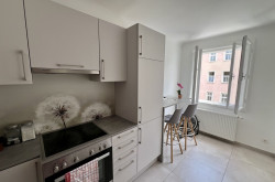 Mit zwei hellen und lichtdurchfluteten Zimmern ist diese Wohnung ideal für Singles, Paare oder kleine Familien. Der offene Wohnbereich kombiniert eine einladende Wohnküche mit einer hochwertigen Einbauküche, die zum Kochen und Verweilen einlädt. Ob für gesellige Abende mit Freunden oder entspannte Sonntage – dieser Raum bietet die perfekte Kulisse für all Ihre Lebensmomente.