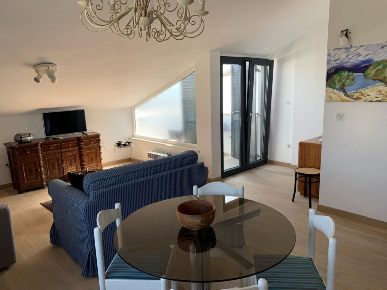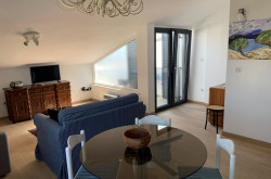 Das oberste Geschoss beherbergt ein weiteres Apartment mit einem Schlafzimmer, Badezimmer, Küche, Essbereich sowie Wohnzimmer mit Terrassenzugang und schönem Ausblick auf die Umgebung.