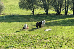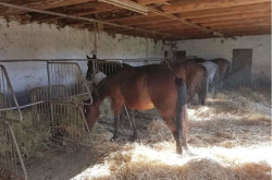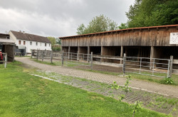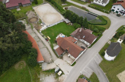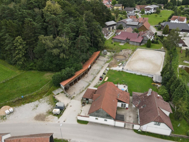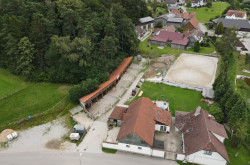 Stallteil mit Reitplatz und langem Holzstall. Roundpen 10 m Durchmesser, weitere 5 Fixboxen (3,5 x 3,5 m) Private Sattelkammer. Plus weitere Sattel- und Futterkammer mit 45 Kästen für Einsteller. WC.